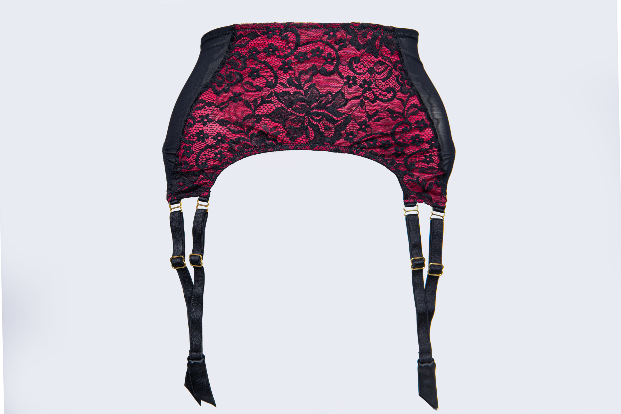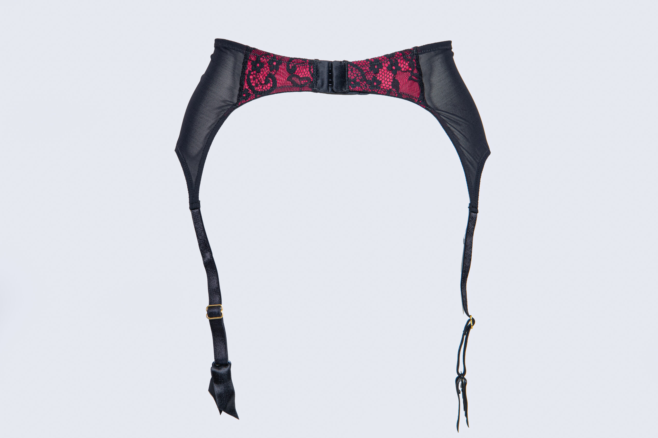 Accessoire de séduction par excellence. Le devant est en tulle framboise agrémenté par une dentelle de qualité italienne. Les empiècements devant son doubler pour un peu de fantaisie.